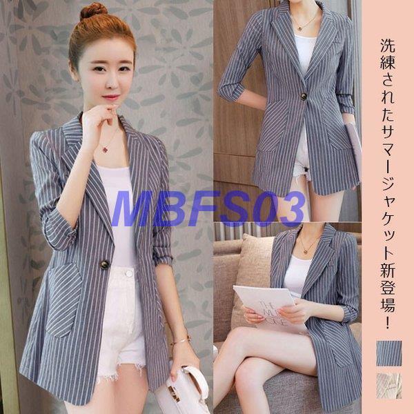 サマージャケット レディース テーラードジャケット 7分袖 ロング丈 ストライプ柄 薄手 大きいサイズ 冷房対策 アウター トップス 春 夏 秋 種類 豊富な品揃え